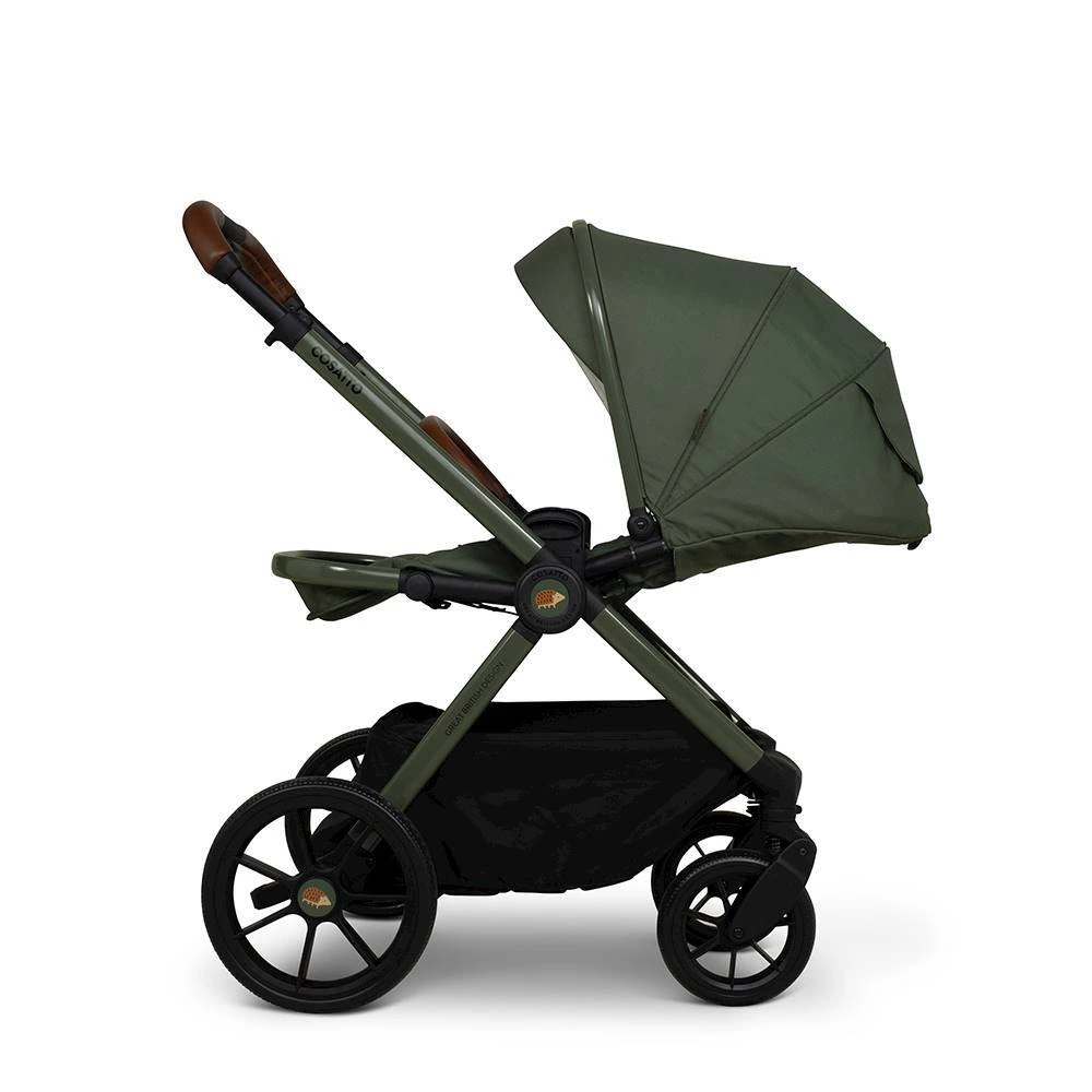 Люлька с ровным спальным местом идет в комплекте для первых месяцев, затем быстро меняется на реверсивный прогулочный блок с тремя положениями наклона. В набор включены адаптеры под детское автокресло Tote i‑Size 0+ для создания полноценной коляски‑шасси — практичное решение на каждый день.