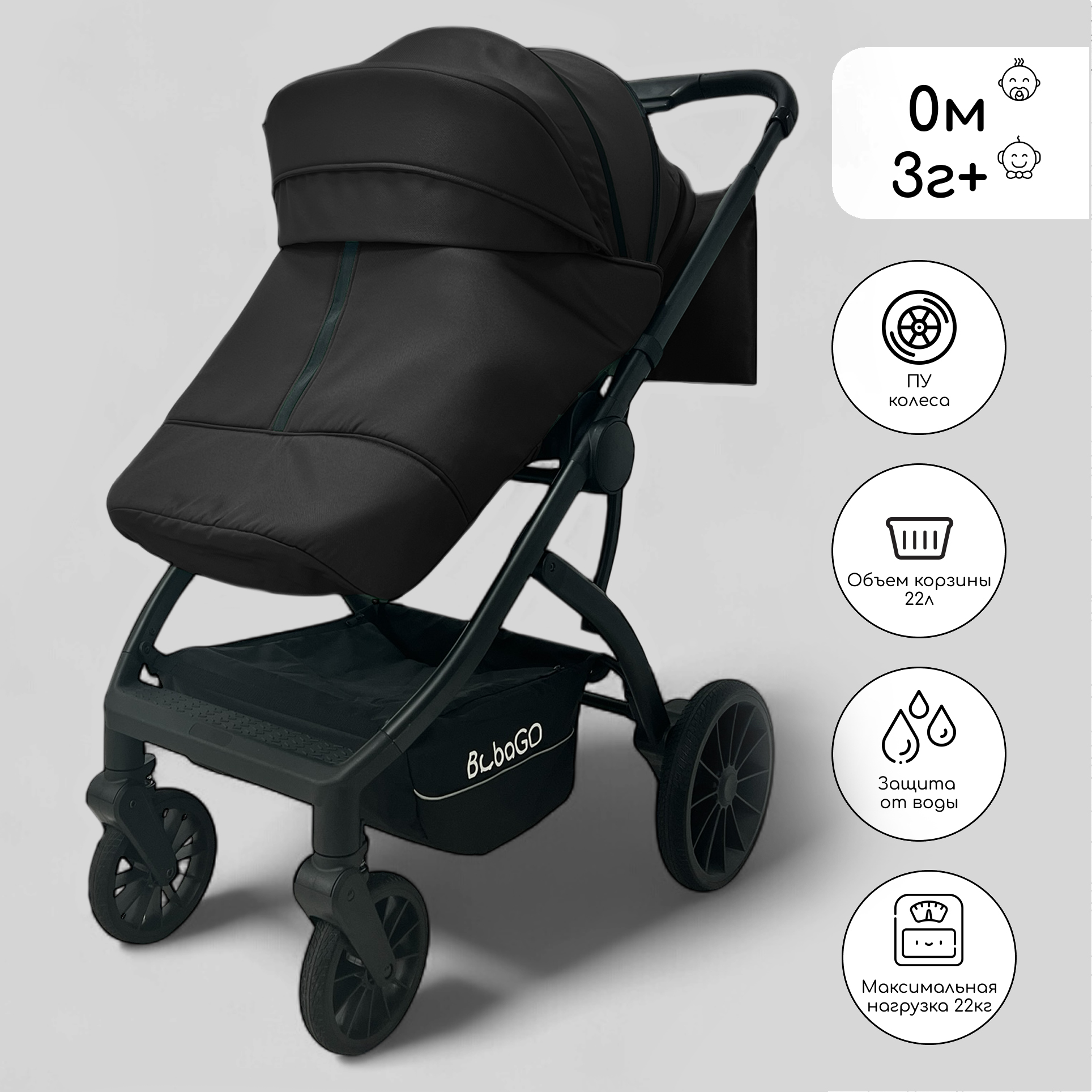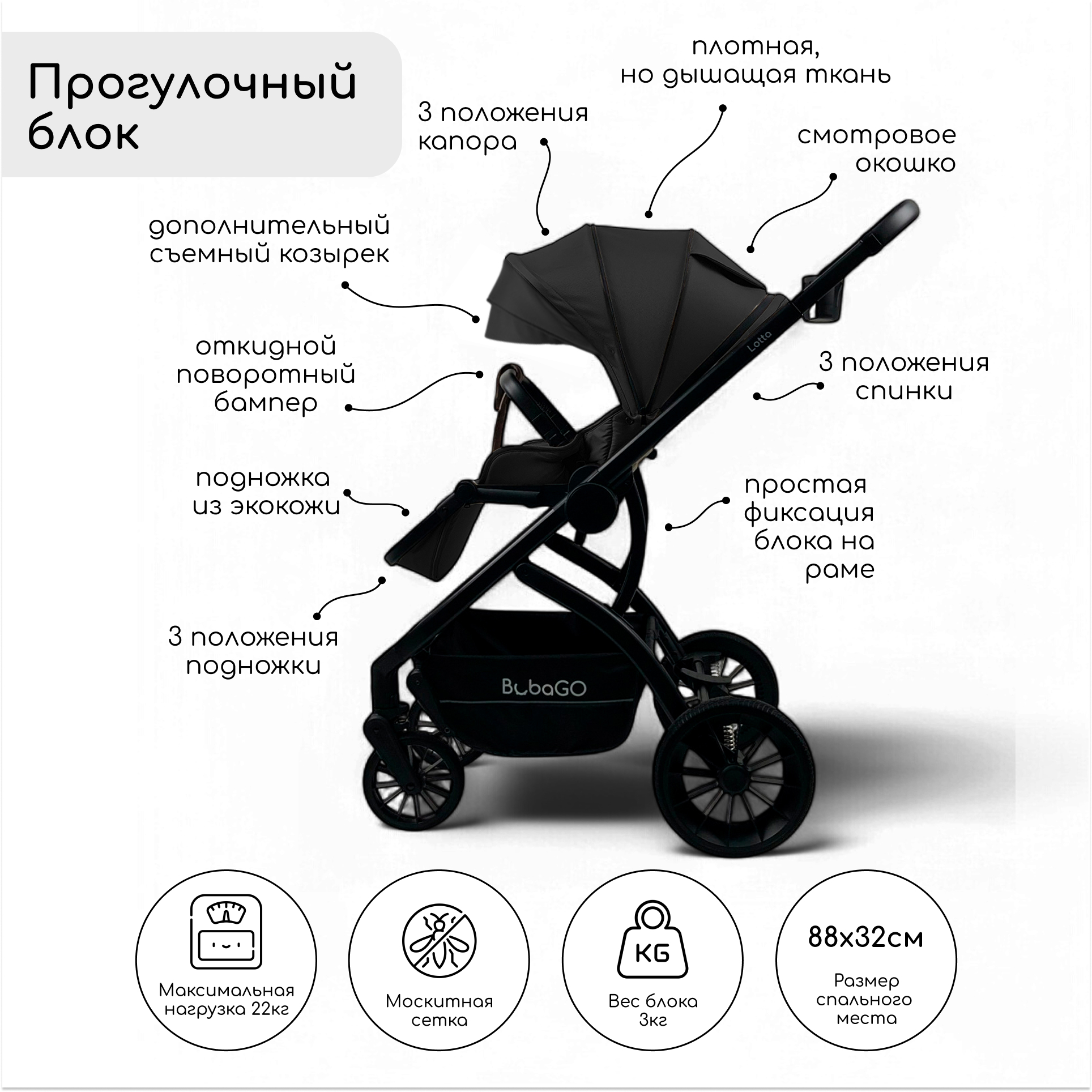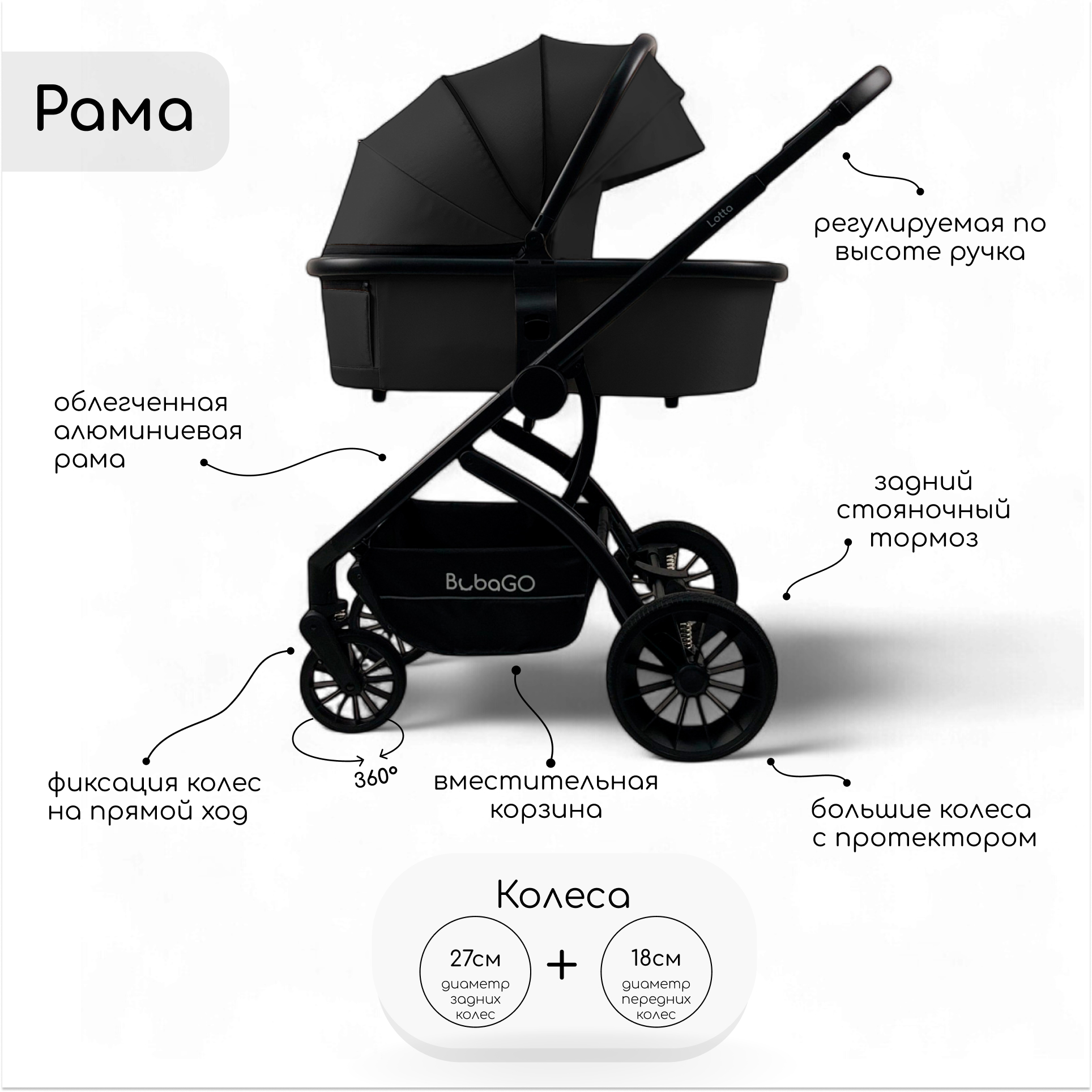 Детская универсальная коляска Bubago Lotta 3в1 BG 150-1 Чёрный