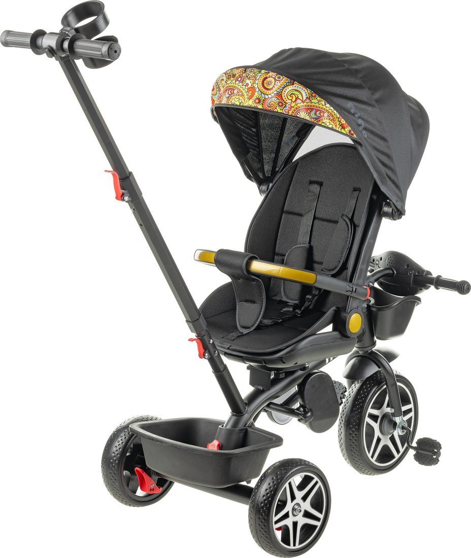 | Информация | - Трехколесный велосипед-коляска с ручкой — идеальный выбор для активных прогулок с вашим малышом. Эта универсальная модель отлично подходит для использования в городе и на природе. - Удобное сиденье со спинкой поворачивается, а высота руля регулируется от 97 до 100 см, что позволяет адаптировать велосипед под рост ребенка. Бампер и трехточечный ремень безопасности надежно фиксируют малыша, а подставка для ног добавляет дополнительный комфорт во время поездки. - Капюшон защищает от солнца и дождя, обеспечивая защиту в любых погодных условиях. Задние колеса диаметром 8 дюймов гарантируют отличную устойчивость и маневренность на разных поверхностях. - Компактные габариты 75?50?100 см делают этот трехколесный велосипед-коляску удобным для хранения, а вес всего 7.5 кг позволяет легко переносить его. В комплекте предусмотрены багажное отделение, корзина, подножка, подстаканник и фара для дополнительного удобства. - Этот детский трехколесный велосипед идеально сочетает в себе функции транспорта и коляски, что делает его отличным выбором для ежедневных прогулок с вашим ребенком. |