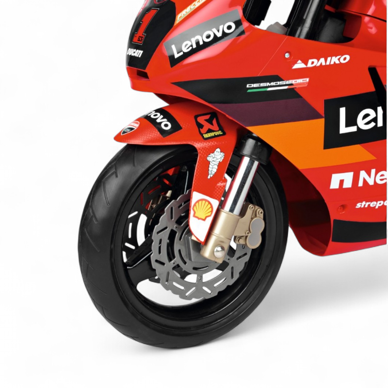 Этот детский электромотоцикл создан по мотивам гоночного прототипа и выделяется взрослыми повадками: 12V питание, две передачи с максимальной скоростью до 7,6 км/ч и ручкой газа на руле для точного дозирования тяги. Взрослый может ограничить вторую скорость отдельной кнопкой, что делает обучение безопасным и поступательным. Модель оснащена съемными боковыми колесами для уверенного начала и подвеской, которая сглаживает неровности и помогает держать курс на высоких для детского класса скоростях. Благодаря резиновым накладкам на протекторе колеса обеспечивают лучшее сцепление на асфальте и плитке.