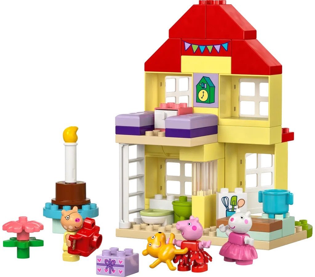| Информация | - Пригласите детей на вечеринку с игровым набором LEGO® DUPLO® "Домик на день рождения свинки Пеппы"! - В комплект входят фигурки свинки Пеппы, пони Педро и овечки Сьюзи, а также фотоаппарат, праздничный торт, форма для торта, подарок и плюшевая игрушка для творческой ролевой игры. - Малыши оттачивают мелкую моторику, исследуя декорации, развивают самовыражение, разыгрывая веселые вечеринки, и отрабатывают социальные навыки, представляя себе общение с друзьями. - Идея подарка для детей дошкольного возраста – этот набор станет отличным подарком по особому случаю для малышей в возрасте от 2 лет, которые любят игрушки со свинкой Пеппой и играть в кукольном домике. - Игрушки LEGO® DUPLO® специально разработаны для всестороннего развития дошкольников, включая логическое мышление и самовыражение. |