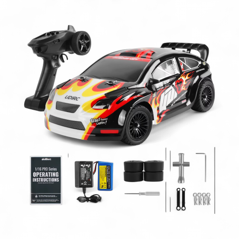 | Комплектация | - машинка, - пульт управления, - аккумулятор, - зарядное устройство, - 8 колес в комплекте (4 шоссейные, 4 дрифтовые) - отвертка, - инструкция. |