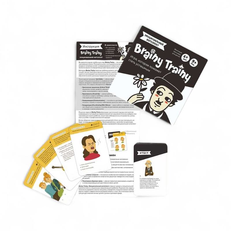 Brainy Trainy «Эмоциональный интеллект» УМ462 — карточный тренажер мягких навыков для детей, который помогает уверенно распознавать эмоции, понимать состояние собеседника и налаживать контакт в любой ситуации. В наборе 80 заданий с разными уровнями сложности и развиваемыми компетенциями, на обороте каждой карты — обоснованный ответ, поэтому ребенок видит логику решения и учится переносить навыки на новые жизненные случаи.