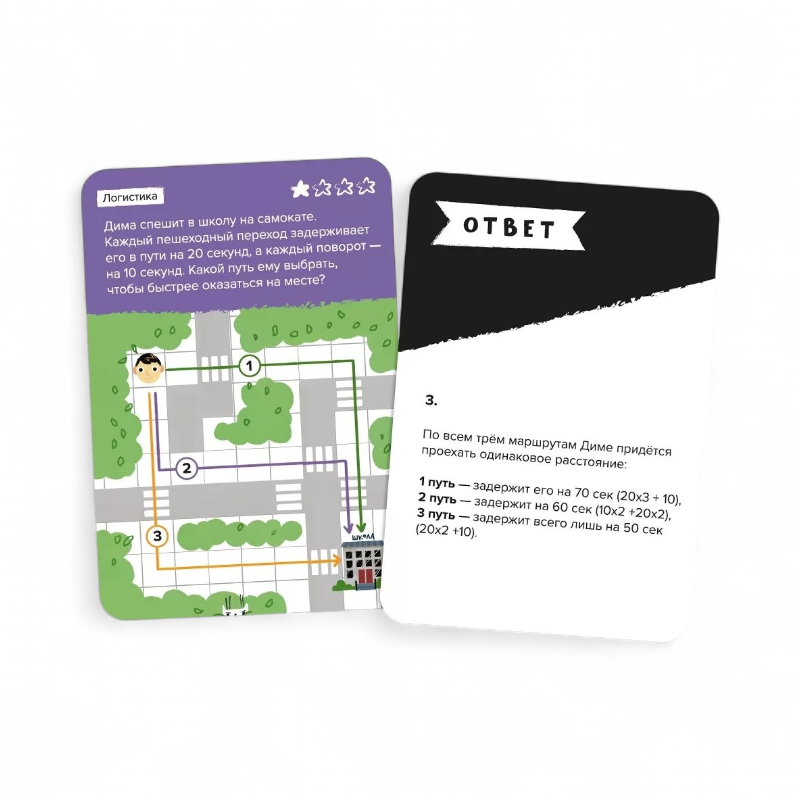 Заниматься можно индивидуально — по несколько карт разной сложности за одно занятие — или устроить интеллектуальный турнир для команды любого размера, делясь на группы по 2–5 человек. Такой формат позволяет гибко адаптировать нагрузку под возраст и опыт игроков.