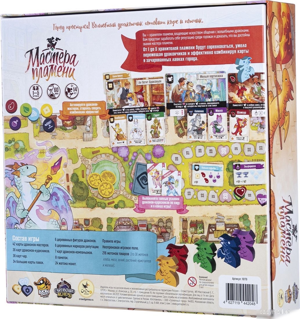 | Информация | - Погрузитесь в волшебный мир «Мастера пламени», где каждый ход открывает новые возможности для творчества и стратегии! В этой увлекательной игре вам предстоит стать хранителем огня и наладить дружеские отношения с удивительными драконами. Каждый дракон обладает уникальными способностями, которые помогут вам в достижении главной цели — стать мастером огненного ремесла! - В вашем распоряжении окажутся не только драконы, но и множество интересных лавок, где вы сможете зарабатывать очки репутации. Используйте свои навыки общения и магии, чтобы вдохновить дракончиков на создание удивительных вещей и приготовление вкуснейших угощений. Чем больше вы будете взаимодействовать с лавочниками и активировать своих драконов, тем выше ваша репутация! - Игра «Мастера пламени» идеально подходит для семейных вечеров и дружеских встреч. Она развивает стратегическое мышление и креативность, а также позволяет погрузиться в атмосферу волшебства и приключений. Сразитесь с друзьями за титул мастера огненного ремесла и покажите, кто из вас лучший в этом захватывающем мире! - Не упустите возможность добавить эту игру в свою коллекцию! «Мастера пламени» — это не просто игра, а целый мир, полный магии и увлекательных заданий, который ждет вас и ваших друзей. |