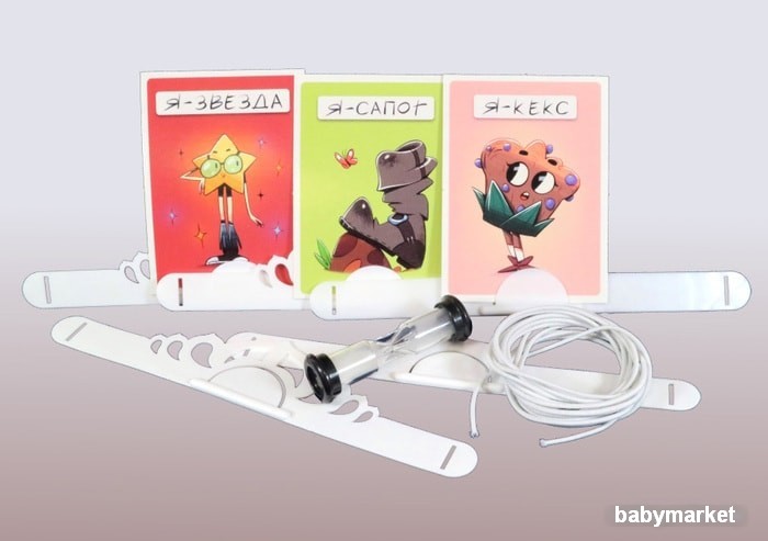 | Комплектация | - диадемки-держатели – 8 шт;- карточки с рисунками – 36 шт;- песочные часы – 1 шт;- шляпная резинка – 2,5 м. |