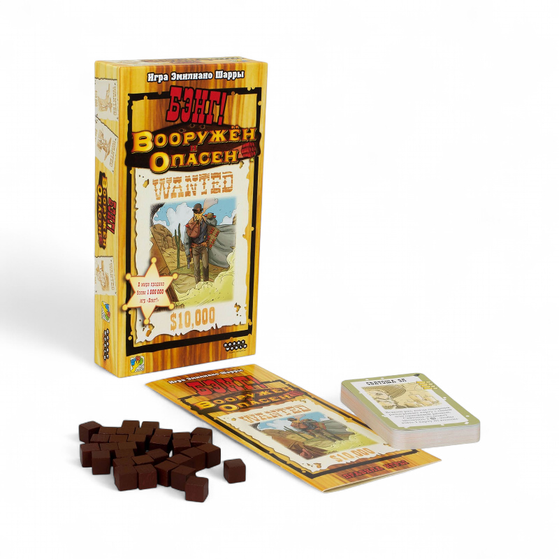 Новая партия на Диком Западе становится жарче: в коробке вас ждут «опасные» карты и заряды, которые усиливают эффекты выстрелов, активируют способности персонажей и добавляют тактических решений. Заряды накапливаются и тратятся в нужный момент, а «опасные» карты вводят особые действия и усиления — от дальнобойного карабина до бандольера для дополнительных выстрелов. Эти механики органично сочетаются с базовыми правилами и делают дуэли более напряжёнными и разнообразными.