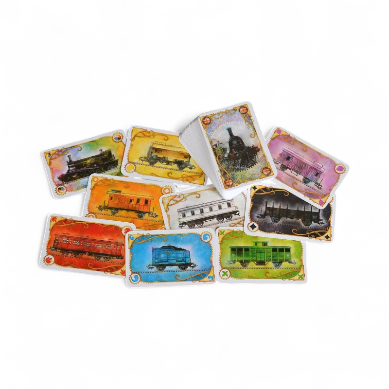 - Полноценная реиграбельность за счёт уникальных колод: 47 технологических карт и тематическая колода поездов для UK, 60 карт акций и отдельные билеты для PA