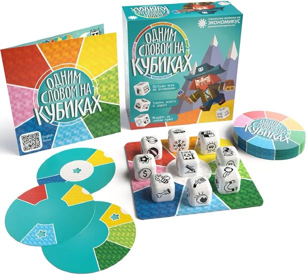 | Информация | Новая версия популярной игры "Одним Словом" – теперь на кубиках!Объединяй сразу несколько понятий всего одним словом - ассоциацией. Динамичная весёлая игра на объяснение слов и ассоциации с необычным принципом: нужно загадать сразу 2 или 3 слова и объяснить их всего одним словом! Кажется, что это невозможно, да? :)Попробуйте!Правила игры за 1 минуту:1. Бросьте кубики и выставьте их на цветное поле. Раздайте по 9 круглых карт.2. Верхняя карта – твоё задание. Объедини кубики указанных цветов ассоциацией одним словом!3. Вместе с первым отгадавшим – сбросьте по карте. Первый, кто избавился от карт – побеждает! |