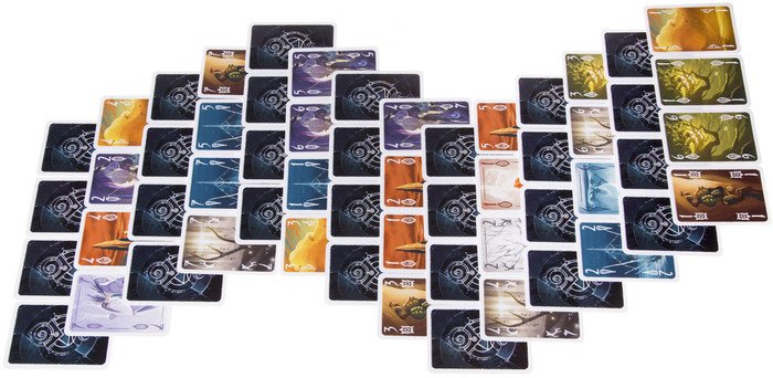 | Комплектация | Игра состоит из 56 карт: 7 родов по 7 карт с цифрами от 1 до 7; 7 карт духов, связанных с определенным родом и цифрой |