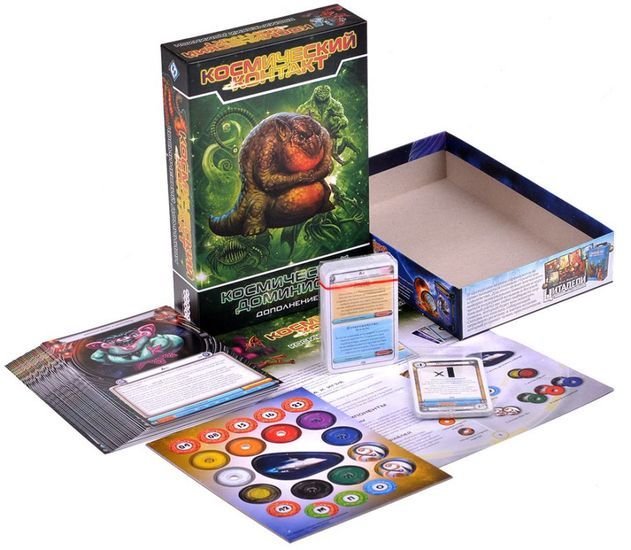 | Информация | Космические державы наращивают свой потенциал. Из отдалённых галактик прибывают невиданные расы пришельцев, и с их появлением напряжение стремительно нарастает. Кто же воцарится над перенаселённым космосом? Лишь время покажет. 30 новых инопланетных рас вступают в сражения за далёкие планеты! Безумный Шут сорвёт все ваши планы, Инь-Ян заставит трепетать в тихом ужасе пред своим величием, вы будете закатывать глаза при виде надоедливых Туристов и впадёте в безумие от гипнотического вращения Вихря! Дополнение "Космический доминион" разработано на основе идей фанатов игры "Космический контакт". В наборе вы найдёте абсолютно новую колоду наград, включающую карты устрашения, отступления и карты атаки с переменным значением. Также вас ждут маркеры кораблей, которые позволят провести партию в одном из предложенных новых режимов игры или даже придумать свой собственный! Внимание! Это дополнение. Для игры вам потребуется базовая версия "Космический контакт". |