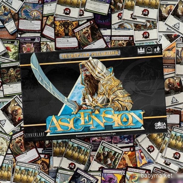 | Информация | scension — один из самых известных и совершенных колодостроев, созданный чемпионами легендарной Magic: The Gathering. Соберите уникальную колоду героев, используя сильные стороны и бонусы четырёх фракций. Пробуйте разные стратегии, формируйте собственный стиль игры и сокрушайте всех монстров на своём пути! Об игре. Ascension — ни много ни мало отец современных колодостроев, чьё первое издание 2010 года стояло у истоков развития жанра. Его особенности зародили новый канон декбилдинга и используются во многих играх до сих пор. Механики ничуть не устарели — за 15 лет игра прошла проверку временем на 100% и достигла совершенства в нынешней четвёртой редакции. Перед вами только карты, рынок и ваша колода. Улучшайте её, приобретая карты героев и уникальных конструкций. Комбинируйте эффекты разных фракций, получая бонусы от их синергии. И побеждайте монстров, чтобы набрать как можно больше очков славы и победить. Это классический лаконичный колодострой без излишков и изъянов — идеальный кандидат для знакомства с жанром. Простые правила помогут новичкам без проблем разобраться с механиками. Есть ещё один жирный плюс: если вы познали все нюансы Ascension, то уже умеете играть в любой колодострой. Настолько велико влияние игры на жанр. Легко в учении, но тяжело в бою! Несмотря на простые правила, игра очень глубокая, соревновательная и конкурентная. Отсюда и её популярность среди гиков, которые в опытной компании устраивают супернапряжённые партии, демонстрируя чудеса тактики. Ascension — это целая игровая вселенная с богатой историей. Вырвавшись из тысячелетнего заточения, падший бог Самаэль хочет захватить процветающие земли Вигила и отомстить своим братьям. Помня о последствиях прошлой битвы, четверо богов отправляют на помощь в Вигил представителей своих миров. Ваша задача — собрать команду отважных героев, сразиться с армией чудовищ Самаэля и стать самым прославленным покорителем богов! Для победы нужно заработать как можно больше очков славы. Вы добываете их, приобретая сильные карты, используя их особые свойства и побеждая монстров. Прокачивайте свой ресурсный движок, чтобы получать как можно больше рун для покупки новых карт и сил для сражений с жуткими существами. А также не забывайте комбинировать карты из одной фракции для активации их синергии. Фракций в игре четыре: Просветлённые, Жизнепоклонники, Механа и Бездна. Карты, имеющие свойство «единства», дают дополнительные бонусы при розыгрыше других карт этой же фракции в текущем ходу. Также в колоде есть конструкции — уникальный тип карт, которые не сбрасываются в конце хода, а выкладываются перед игроком и дают ему постоянные эффекты, пока не будут уничтожены. Игра завершается, когда в запасе заканчиваются фишки славы. Подсчитайте все очки на картах из вашей колоды и прибавьте всю заработанную славу по ходу партии. Тот, у кого будет больше очков, станет великим героем, защитившим мир и покой родных земель Вигила. |