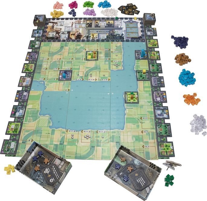 | Комплектация | 6 двусторонних фрагментов районов, 1 планшет победных очков, 2 ряда рынка (6 частей), 78 жетонов планов зданий, 90 пластиковых фигурок работников, 285 пластиковых кубиков, 4 пластиковые фишки игроков, 4 картонные стройплощадки, 72 пластиковые фишки собственности, 1 жетон первого игрока, 12 жетонов объявлений, 13 жетонов целей, 30 жетонов-джокеров, 6 пронумерованных жетонов (от 1 до 6, для одиночного режима) |