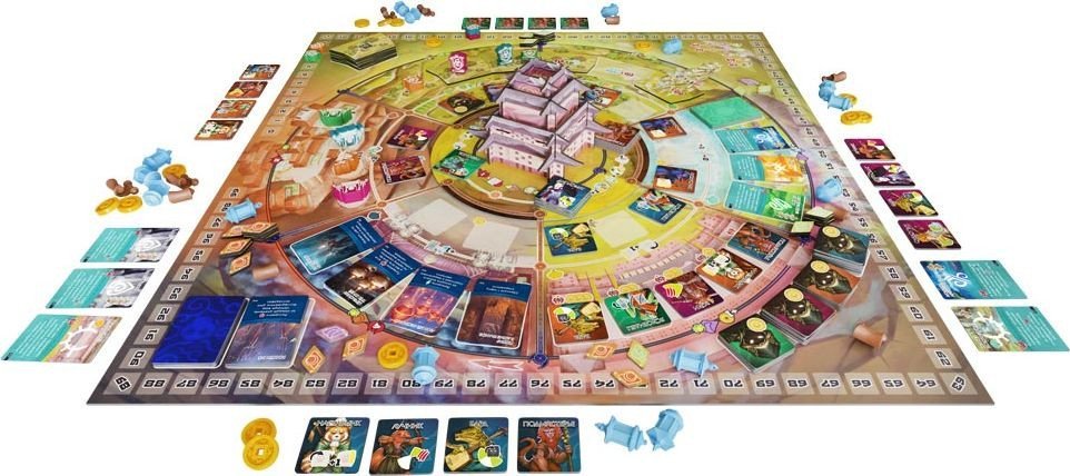 | Комплектация | 1 двустороннее основное поле, 1 двустороннее вращающееся поле, 1 Дворец Феникса, 12 тайлов деревень, 1 тайл алтаря, 74 жетона ресурсов, 74 фишки ресурсов, 36 карт откровений, 20 карт событий, 80 тайлов соратников, 4 жетона Глашатаев, 4 жетона Исследователей, 4 жетона благосклонности, 12 фишек Глашатаев, Исследователей и Благосклонности, 1 жетон первого игрока, 1 фигурка первого игрока, 36 жетонов осколков луны, 12 карт секторов, 12 карт сценария, 3 карты поворотов, 4 памятки игрока, 1 фигурка дракона, правила базовой игры, правила игры соло-режима, правила игры дополнительных режимов. |