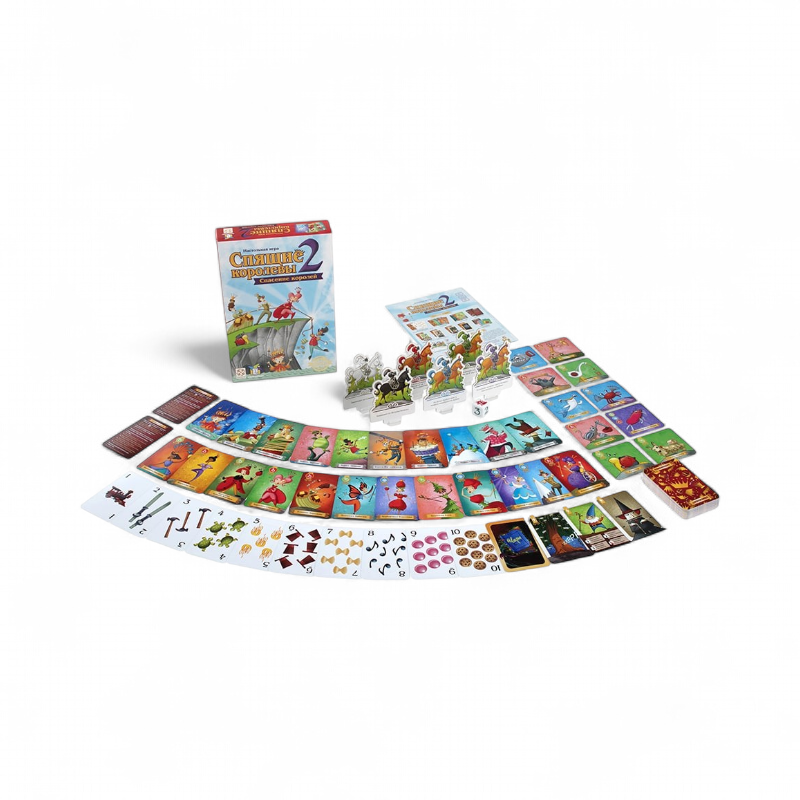 Чем отличается от первой части: здесь появляются жетоны спутников, фигурки рыцарей с подставками и кастомный кубик; цель — собирать королей, разыгрывая королев и особые карты, а не просто «будить» их, как раньше. Мгновенные события — Дикие гномы, Спящие ивы и Ведьма-перекинщица — создают яркие повороты и обучают принимать решения в ограниченных условиях.