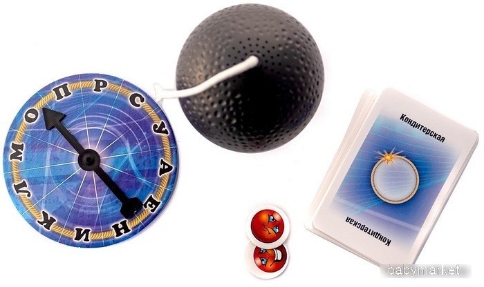 | Комплектация | электронный таймер; правила игры; фишки; карточки; диск с буквами и стрелками |
