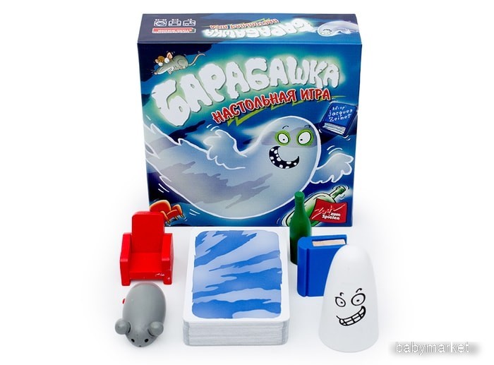 | Комплектация | 5 деревянных фигурок (привидение, кресло, книга, бутылка и мышь), 60 карт. |