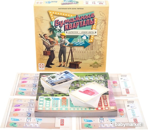 | Информация | Объявлен конкурс на создание идеального квартала, и это ваш шанс проявить себя!Много ли строить бассейнов? А сколько разбить скверов? Может, собрать эти дома в жилую группу? Так, теперь надо бы их поскорее достроить – позовём дополнительных рабочих! Всё, самое время поднимать цены!Каждый раунд выбирайте один их трёх вариантов развития. Возводите дом за домом, соблюдая логичную нумерацию. Применяйте особые эффекты. Объединяйте дома в группы. Делайте всё, чтобы именно в вашем квартале трава казалась зеленее, а небо над крышами ярче!В состав настольной игры Бумажные кварталы входят: 29 двусторонних карт планов застройки, 81 двусторонняя карта строительства, 4 памятки, блок из 100 полей для строительства кварталов и подсчёта очков, правила игры.Закончились поля? Скачайте бумажное поле, распечатайте и продолжайте строительство! |