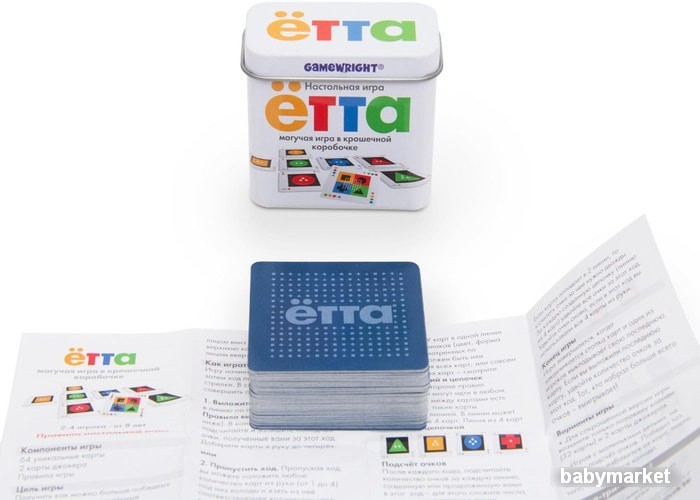 | Информация | Видео-обзорПосмотрите видеообзор от компании Стиль Жизни.Настольная игра Ётта#компактная #карточная #развивающая #для взрослых #для всей семьи #для подарка #для маленького магазина #для среднего магазина #минимальный заказ #8 мартаСмотреть, видеть… и выигрывать! Добавляйте карты на поле так, чтобы цвета, формы и числа на всех картах были полностью разными или одинаковыми в каждой линии. Звучит просто, но чем больше карт сыграно, тем больше возможностей, и именно тот, кто лучше других видит эти возможности, сможет добиться победы! |