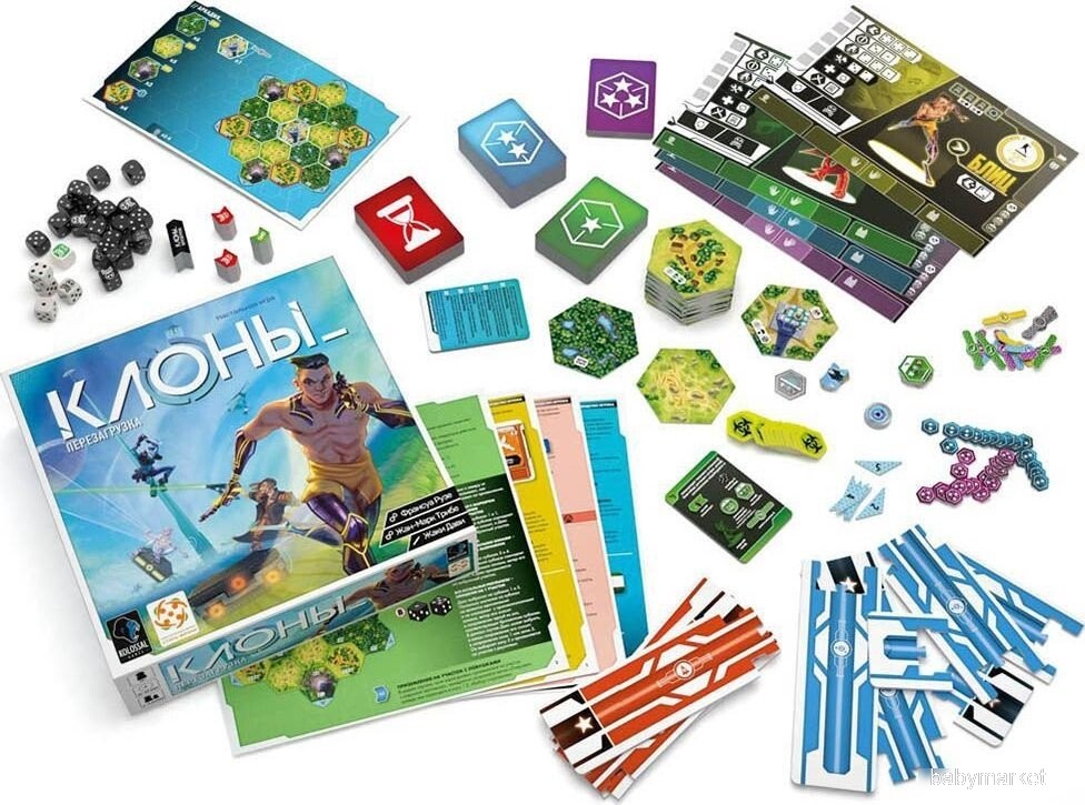 | Комплектация | 256 жетонов; 121 карточка; 29 участков; 25 кубиков; 4 планшета персонажей; 4 фигурки персонажей; 4 сборных трека славы; 4 двусторонних руководства игрока; 1 атлас; правила игры |