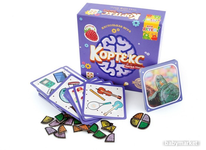 | Информация | Сможете отличить ракушку от клубники на ощупь? А помочь коту догнать мышь и не заплутать в лабиринте? Детская версия игры Кортекс: Битва умов – это 8 типов карт-заданий, которые тренируют память, внимательность, скорость реакции и мышления, навыки устного счёта, координацию, а также сенсорное восприятие с помощью специальных тактильных карт… Не зевайте, а то победа достанется другому игроку! |