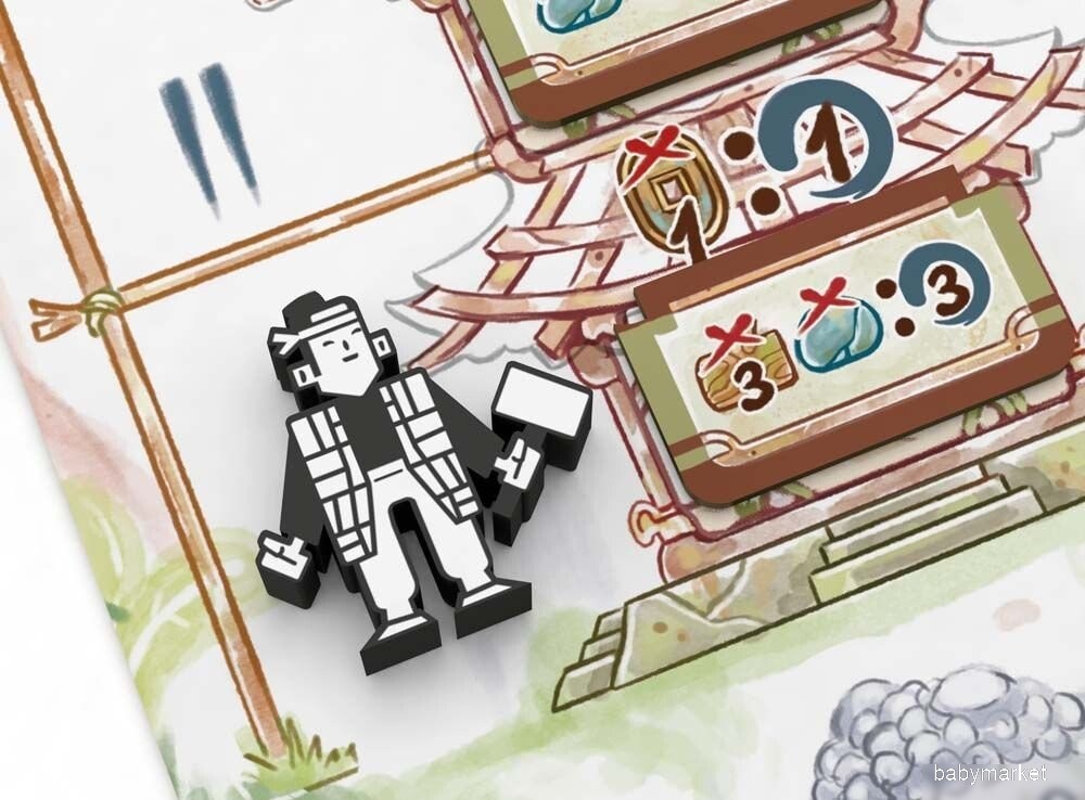 | Комплектация | 1 двухстороннее игровое поле, 1 двухсторонняя великая гора, 1 фишка архитектора, 1 шпиль пагоды, 9 жетонов ярусов пагоды, 4 жетона бонуса пагоды, 36 жетонов медитации (первой эры), 24 жетона медитации (второй эры), 15 жетонов алтарей, 6 стартовых жетонов, 5 жетонов амулетов, 15 фишек прихожан (по 5 каждого из трёх цветов: серый, фиолетовый, оранжевый), 7 жетонов стоимости, 3 жетона штрафа, 16 жетонов украшений, 3 нейтральные фишки курильниц, 12 деревянных фишек изумруда, 3 деревянные фишки света, 20 деревянных фишек камня, 20 деревянных фишек дерева, 30 фишек мон, 1 мешочек. Индивидуальные компоненты игроков (4 набора разных цветов): 3 деревянные фишки монахов, 6 деревянных фишек курильниц, 3 деревянные фишки культов, 3 деревянные фишки монахов, 1 деревянный маркер подношения, 1 деревянная фишка руки, 1 деревянный маркер благовония, 1 деревянный маркер просветления, 2 деревянные фишки колокольчиков, 1 жетон 40 ОП, правила игры. |