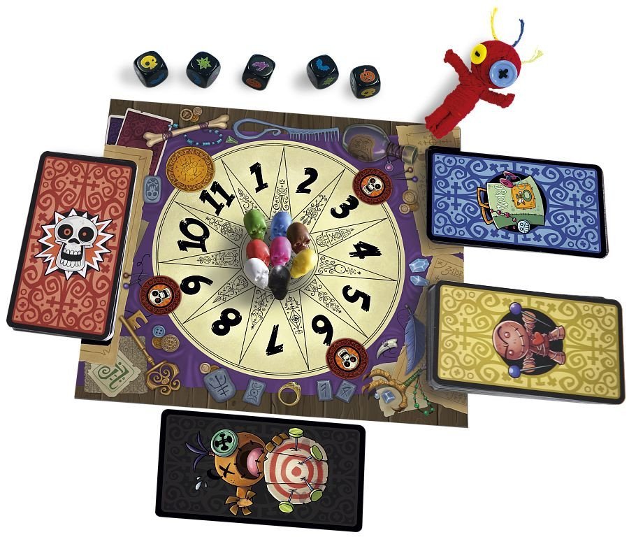 | Комплектация | Правила игры, Кукла вуду, Карточки – 64 шт., Кубики ингредиентов – 5 шт., Фишки подсчета очков – 8 шт., Поле подсчета очков |