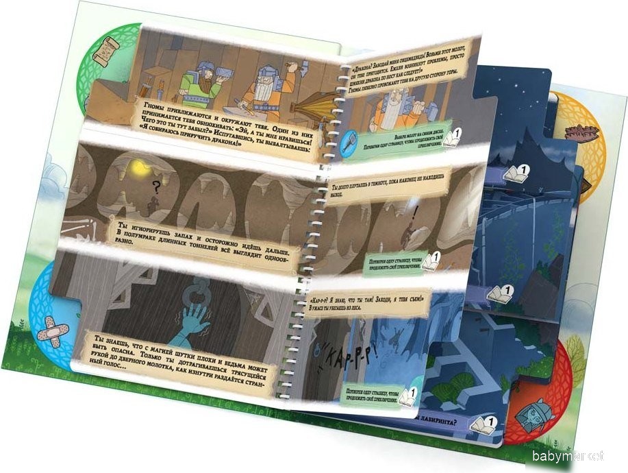 | Информация | - «Мое первое приключение» — это увлекательная книга-игра, которая подарит детям массу положительных эмоций. На каждой странице игроки будут делать выбор, который повлияет на развитие сюжета. Выберите одного из уникальных персонажей, откройте первую страницу и начните захватывающее путешествие. - В этой книге-игре используется система дисков — веселые поворачивающиеся кругляши на углах, которые помогут вам отмечать выбранного героя и собранные предметы. Страницы книги разделены на три части, что позволяет создавать совершенно новые приключения при повторном прохождении! - Во время вашего путешествия вас ждут задания на память, наблюдательность и логические головоломки, которые обязательно понравятся детям. - Не забывайте, что каждое ваше решение влияет на развитие сюжета, поэтому выбирайте с умом! - Подарите детям возможность погрузиться в мир ролевых игр с серией сюжетных игр для самых маленьких — «Мое первое приключение»! - В сюжете "В поисках дракона" вас ждет увлекательное приключение, где вам предстоит покинуть родную деревню и отправиться в странствие, чтобы найти и приручить дракона! Будьте готовы к множеству опасностей на вашем пути... Кто же отправится приручать дракона? Лина по прозвищу "Крепкий Орешек"? Воришка Котстантин? Или волшебник Тимон? |